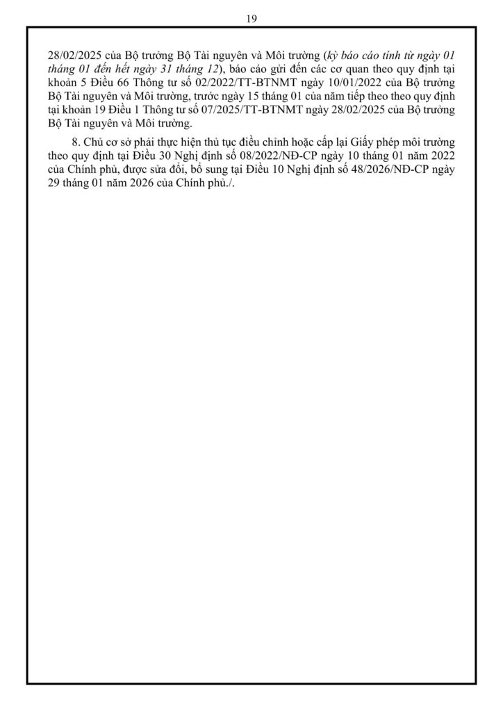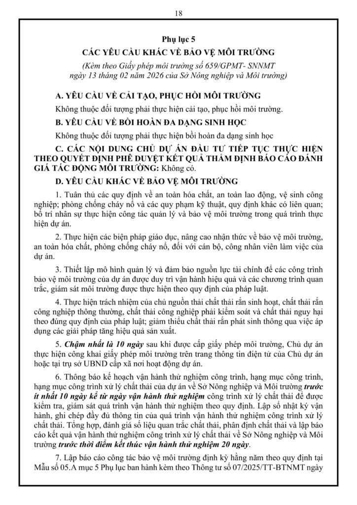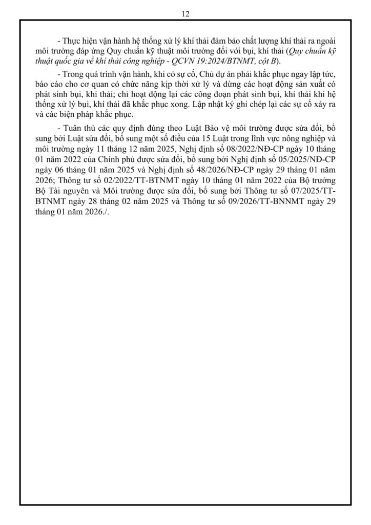- Trách nhiệm doanh nghiệp: Phải vận hành thường xuyên các công trình bảo vệ môi trường và báo cáo kịp thời các sự cố phát sinh cho cơ quan chức năng.