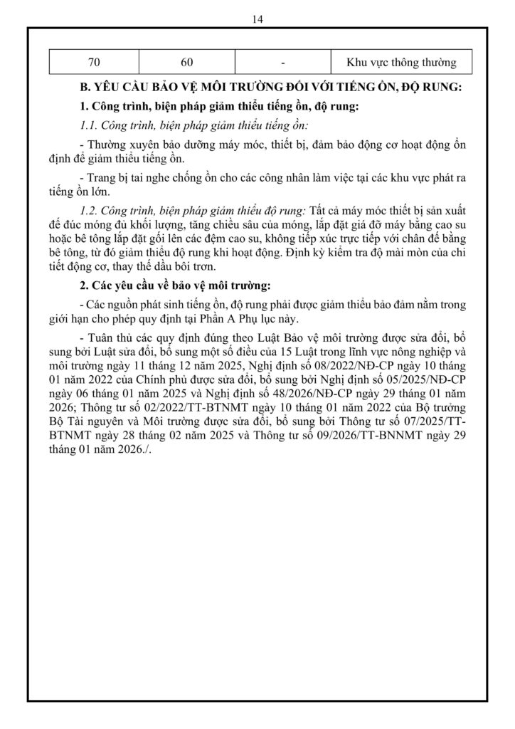 Phụ lục 03: Quản Lý Giảm Thiểu Tiếng Ồn Và Độ Rung Tại Nhà Máy Vũ Hồng Minh